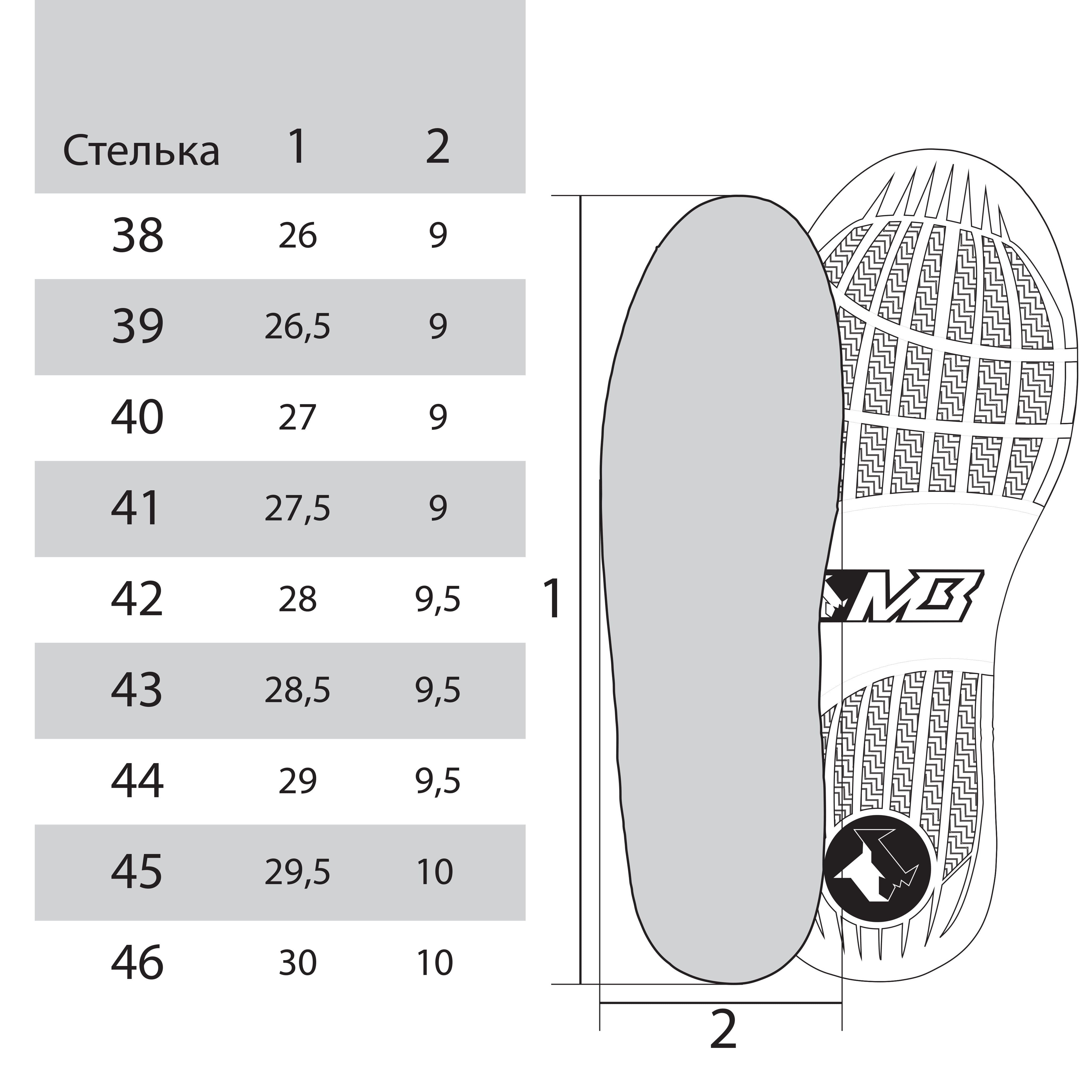 Высота подошвы в районе мыска – 20мм.