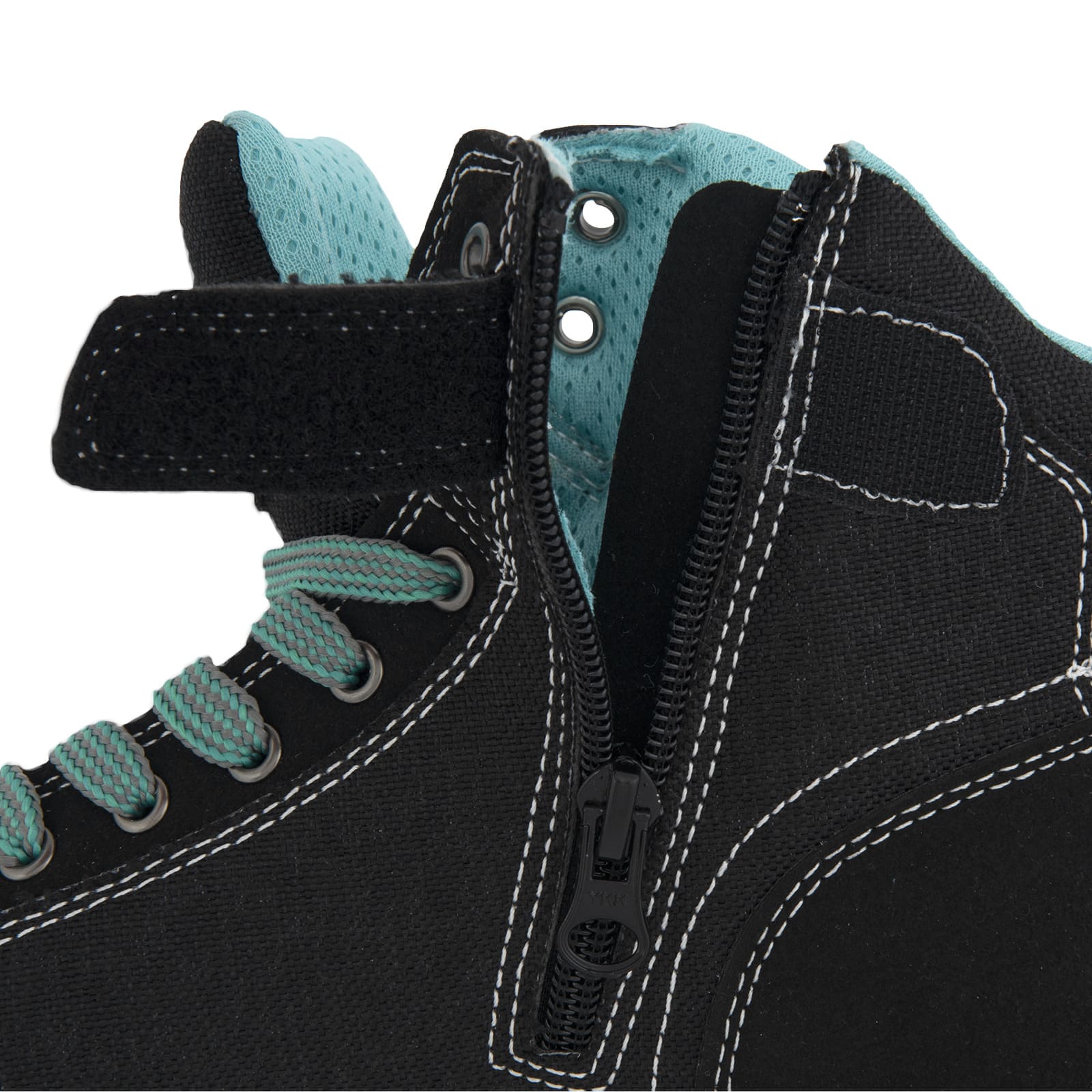 - По периметру, в местах соединения материалов и месте крепления молнии, кеды прошиты двойным швом;